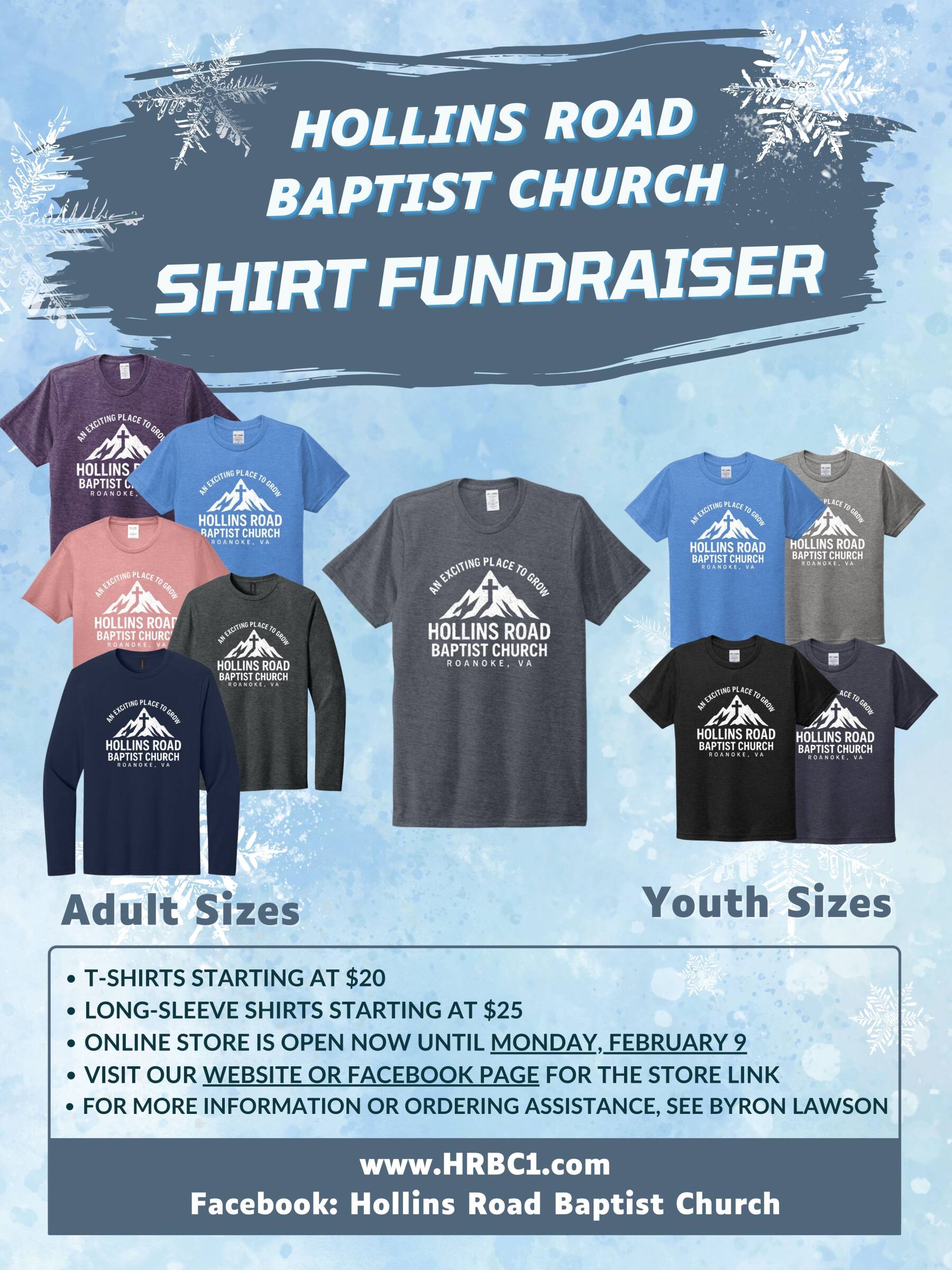 t-shirt fundraiser online store open 1/16/26-2/9/26